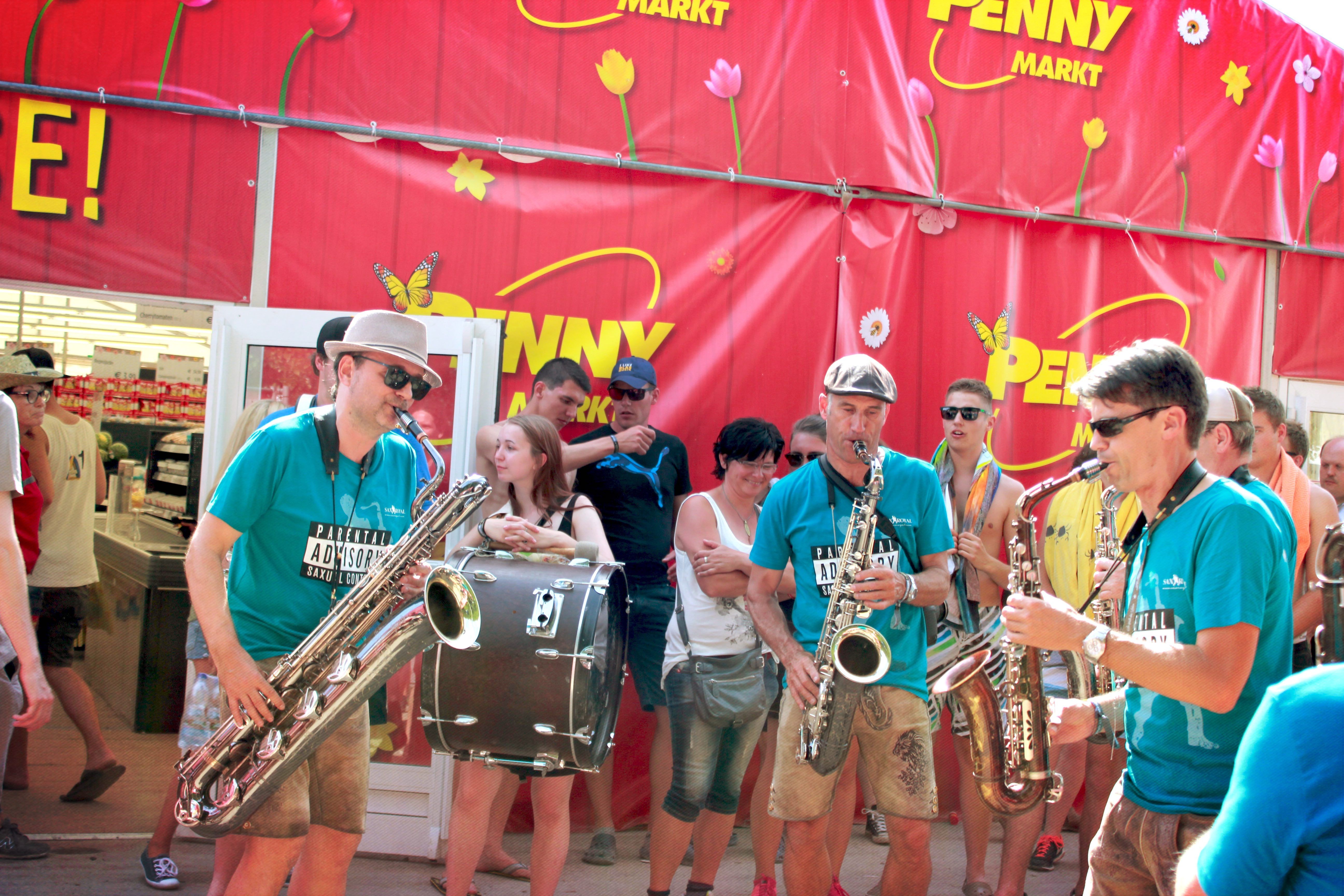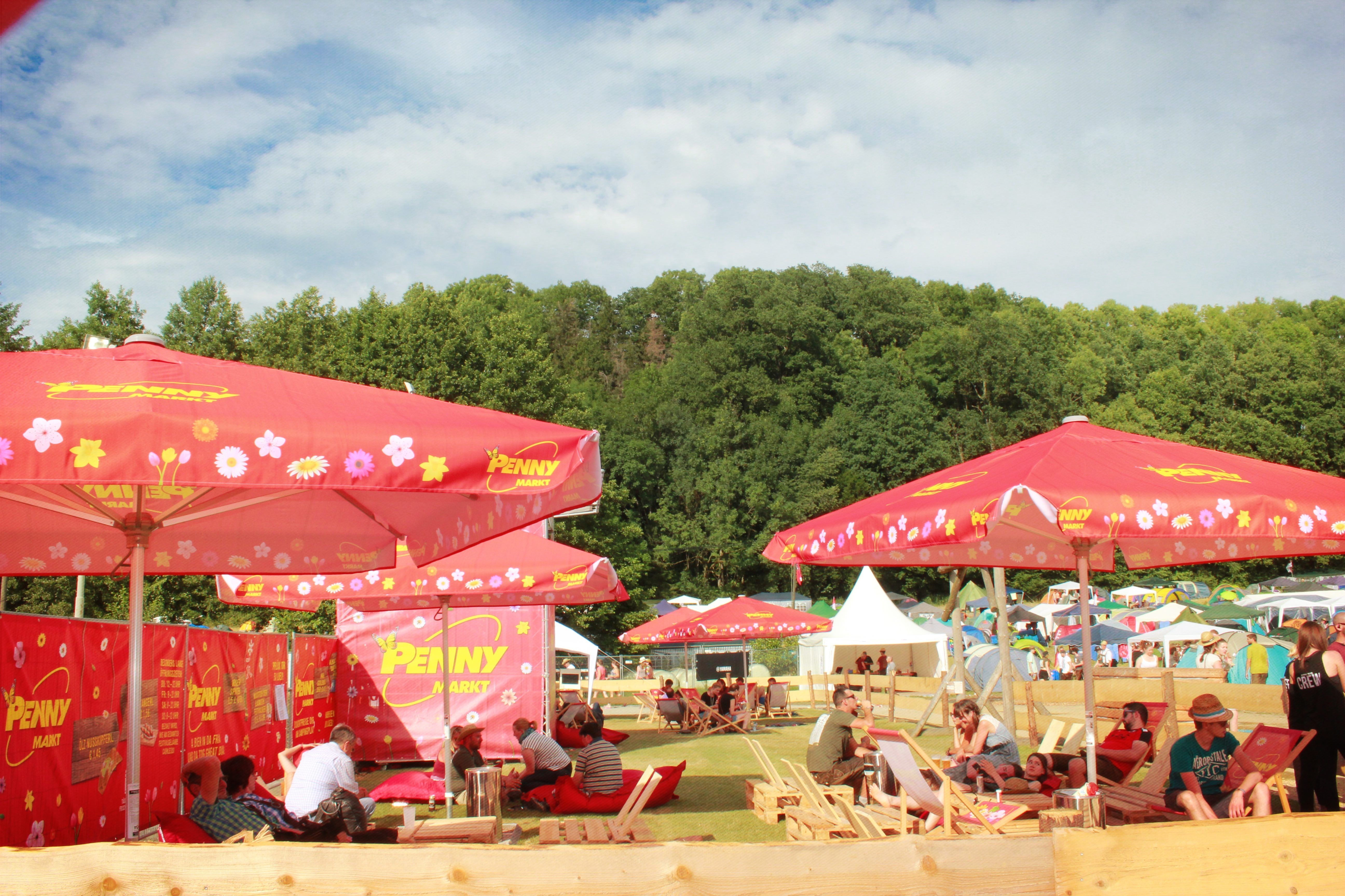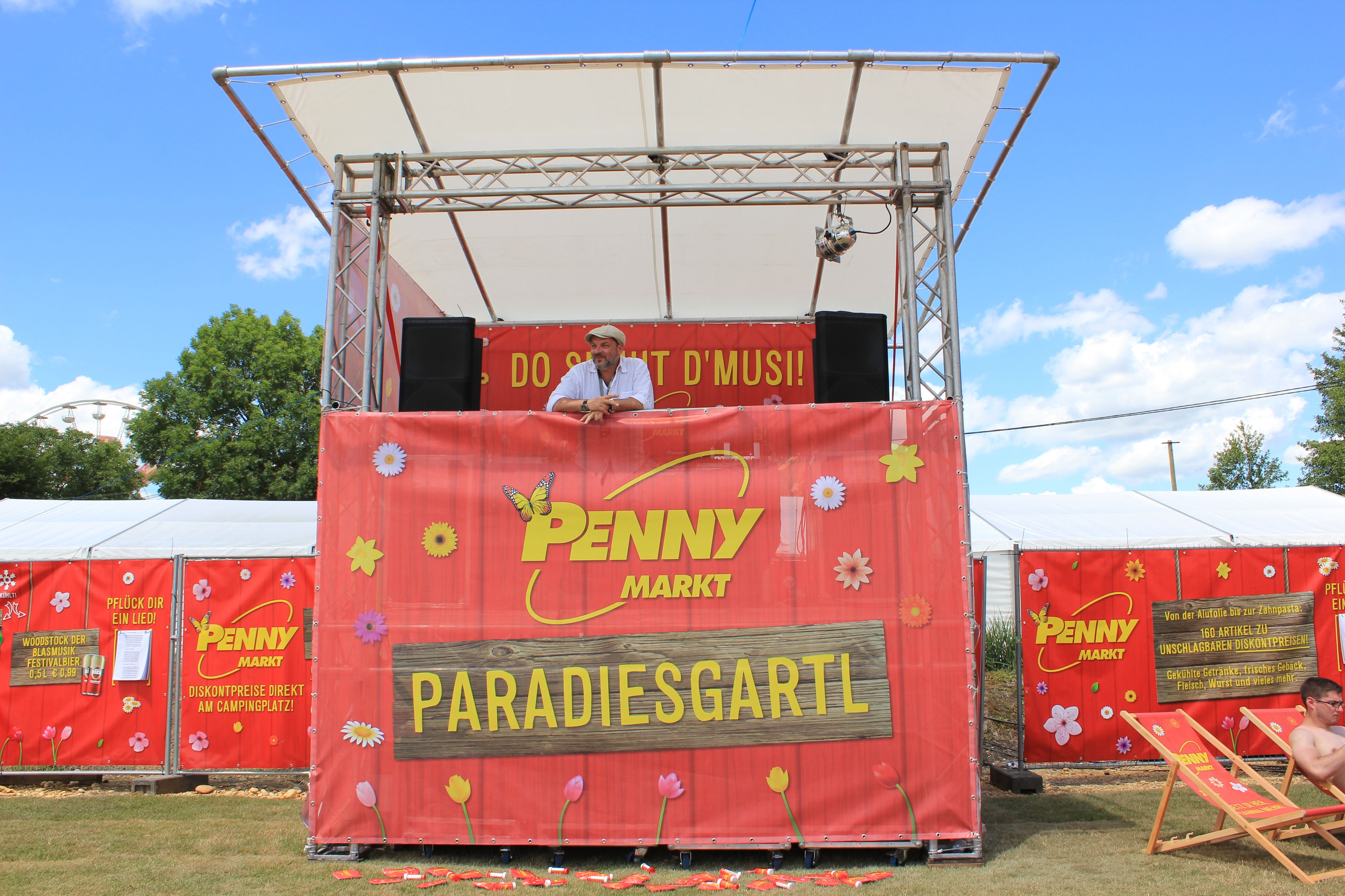 Beim Woodstock Festival der Blasmusik inszenierten wir für Penny eine Chill-Out-Lounge. Ganz im Sinne des Festival-Namens setzten wir auf florale Muster, viel Holz und in Mundart geschriebene Texte. Umgesetzt wurde das „Paradiesgartl“ mit Liegestühlen, einem DJ-Pult, einer Grillstation, Rollrasen, Sonnenschirmen und einer Fotobox. Snacks von Penny und die gemütliche, urige Atmosphäre luden zum Entspannen ein. Um Penny noch besser zu bewerben, setzten wir auf zusätzliche Werbemittel wie Penny-Fächer, Wasserbälle, Seifenblasen, einen riesigen Heliumballon und ein Riesenrad-Branding.