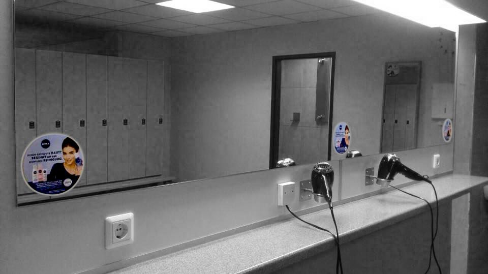 Spieglein Spieglein an der Wand, wer ist die Schönste im ganzen Land? Warum nicht auch einen Blick auf schöne Werbung werfen? Unsere Spiegelkleber erreichen sportaffine, fitnessbegeisterte und körperbewusste Menschen. Umso lieber schauen sie in den Spiegel und damit auf Eure Werbung!