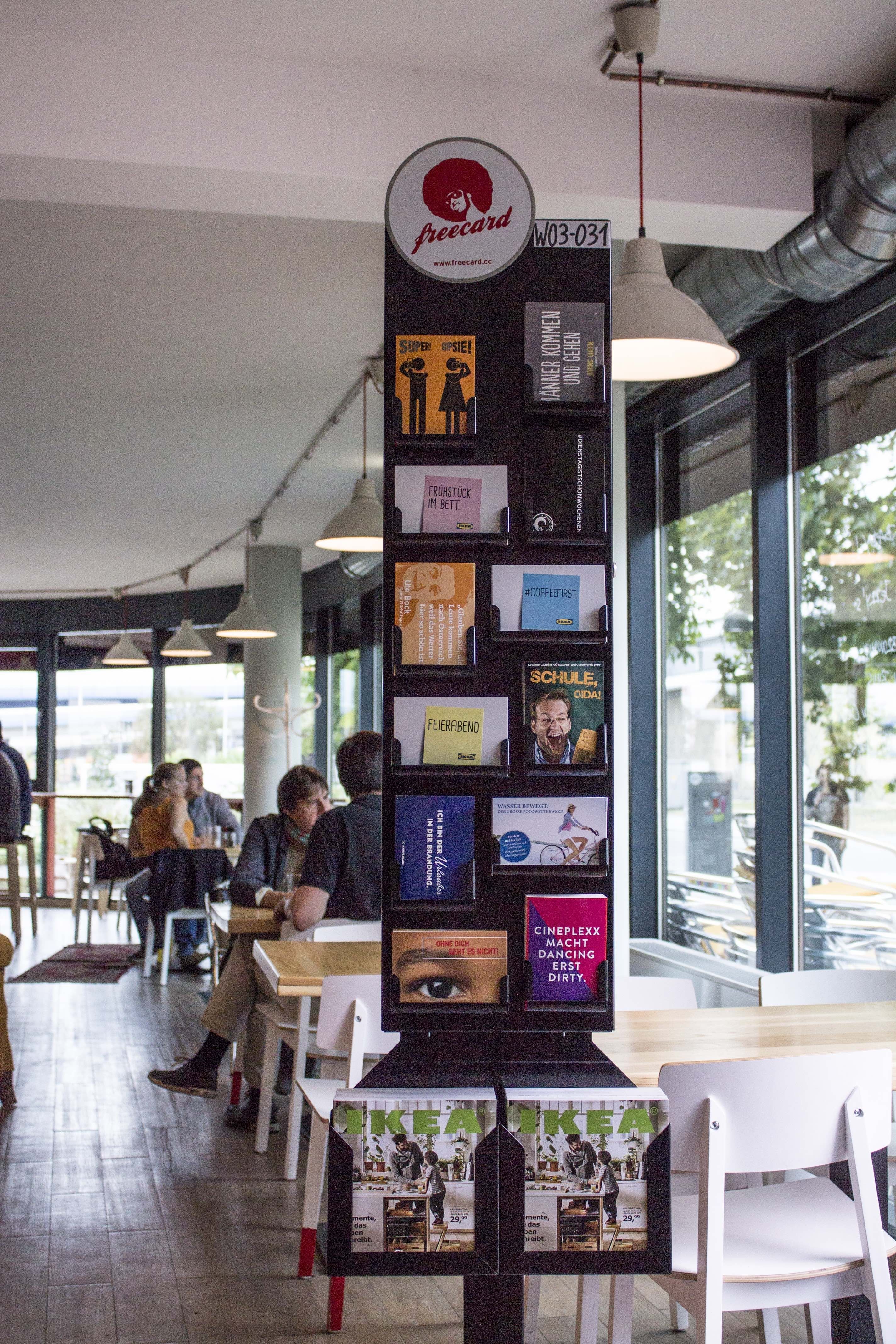 Ihr habt ein Magazin? Gratulation! Wir haben den passenden Vertrieb. Über unsere Freecard-Displays könnt Ihr Eure Magazine, Broschüren, Kataloge, Reisemagazine ganz einfach und effizient von uns vertreiben lassen. Mit unseren 350 Standorten erreicht Ihr die Zielgruppe punktgenau und überall dort, wo sie gerne ihre Freizeit genießt.