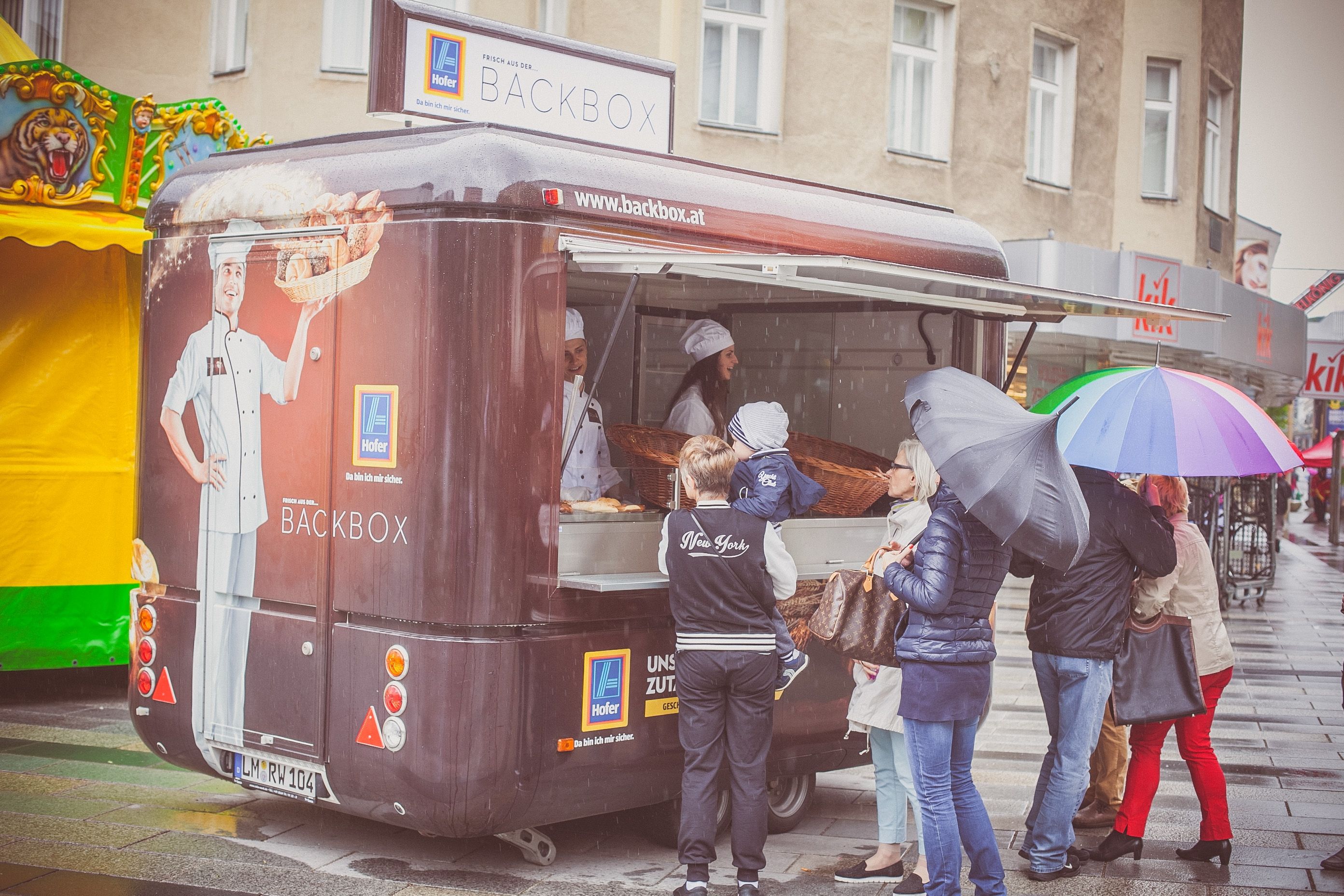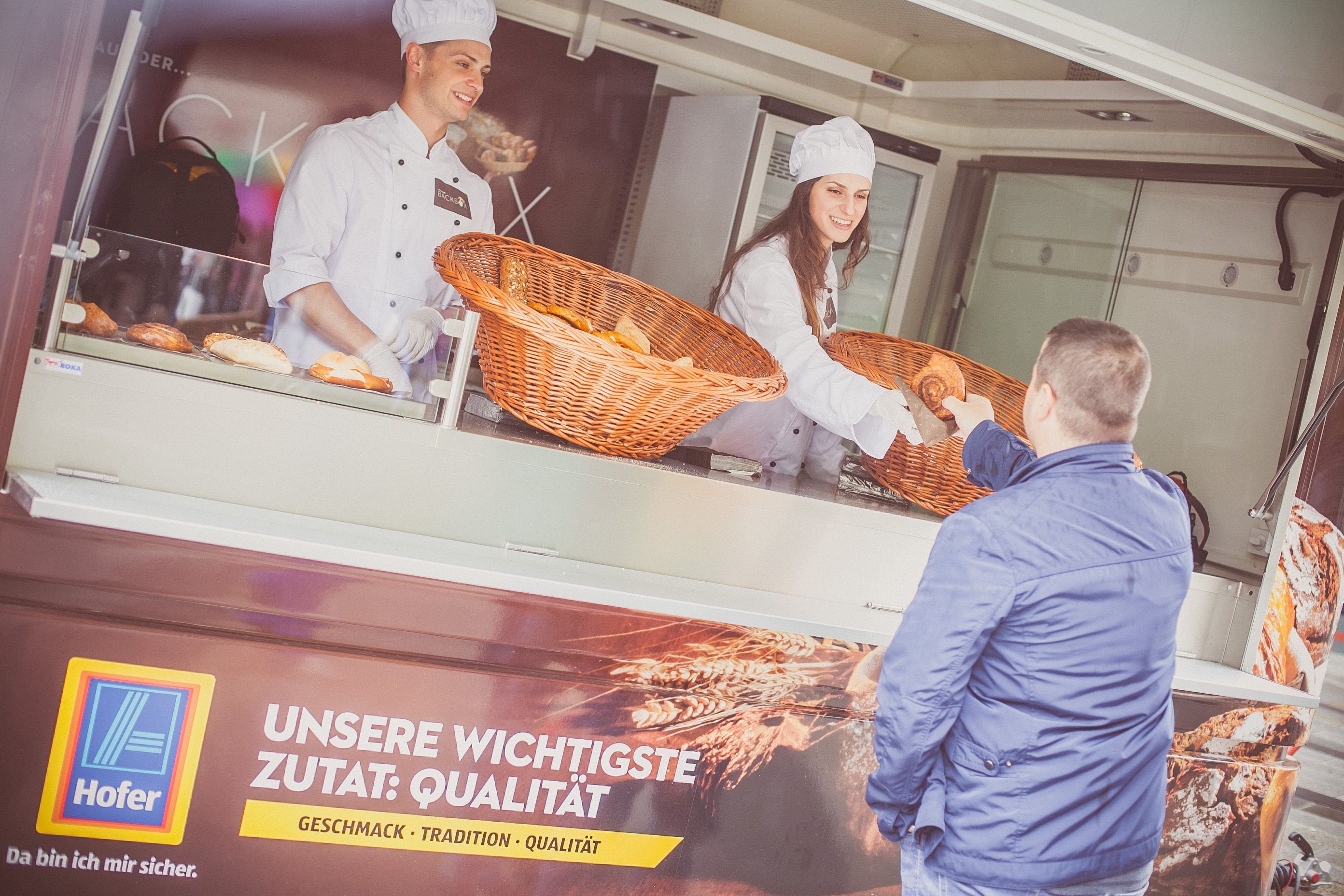 Backe, backe Kuchen, der Hofer hat gerufen… Um auf die Backbox von Hofer aufmerksam zu machen, entwickelten wir eine Roadshow und fuhren mit einer Backbox durchs Land. So versorgten wir Stadt und Land mit frischem Gebäck und süßen Leckereien – für die Zielgruppe ein Genuss!