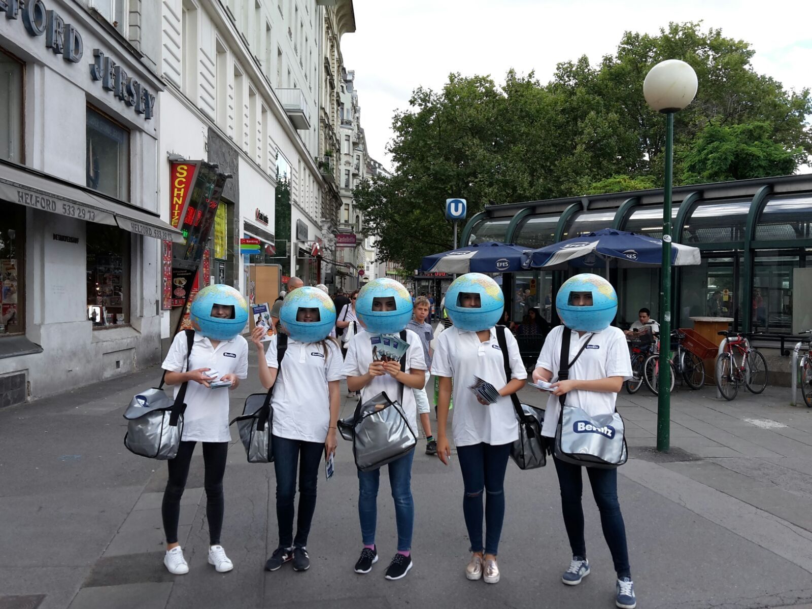 Es muss kostengünstig und auffällig sein? Kein Problem. Mit einer Promotion der Sprachschule Berlitz konnten wir beweisen, dass wir beides leicht vereinen können. Kurzerhand funktionierten wir Globen zu Helmen um, setzten sie unseren Promotoren auf und entsendeten sie an die Hotspots Wiens. Die Globen-Helme sorgten für Aufsehen und nebenbei verteilten unsere Promotoren Infofolder über das Angebot von Berlitz. Eine durchdachte Aktion, die ihre Wirkung zeigte.