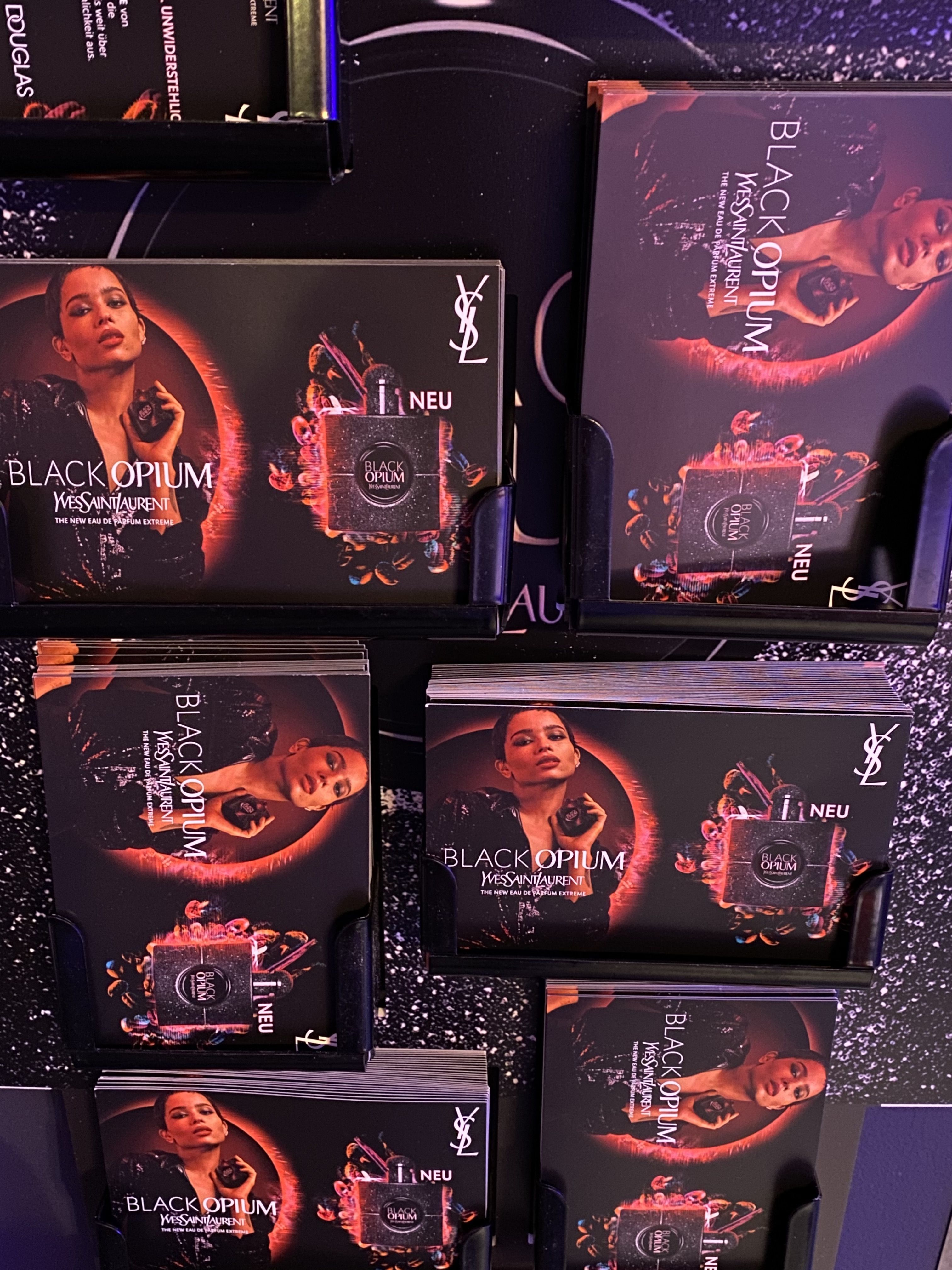 L'Oréal nützt diese Präsenz für eine Inszenierung der besonderen Art: für „Black Opium“ von Yves Saint Laurent wurde die Freecard mit einem Duft-Scentseal versehen und mit einem Display-Sonderbranding sowie der Belegung aller 12 Fächer kombiniert. So entstand – der Marke entsprechen – ein besonders exklusiver Auftritt.